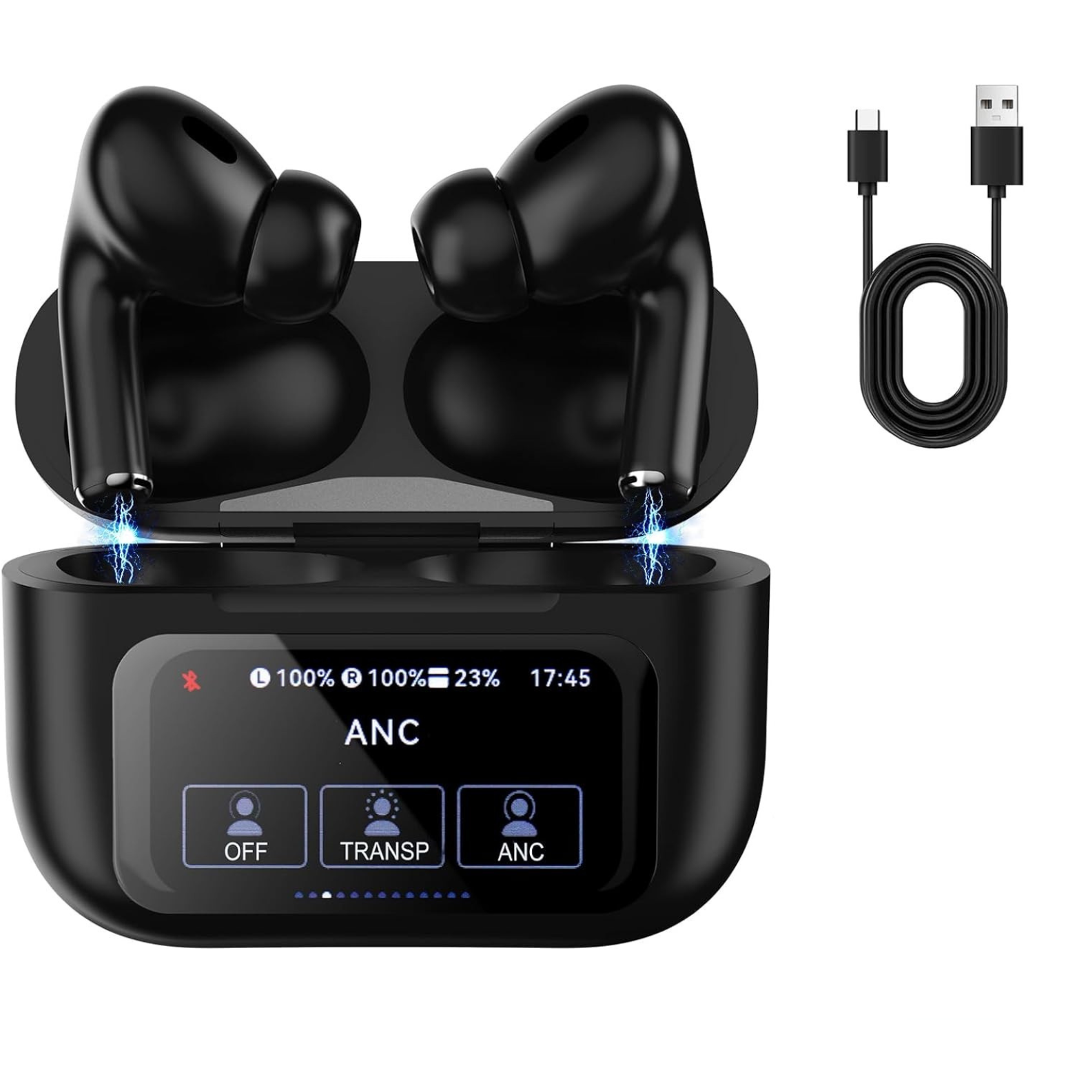 Smart LCD Display – Shows battery life, connection status, and sound modes